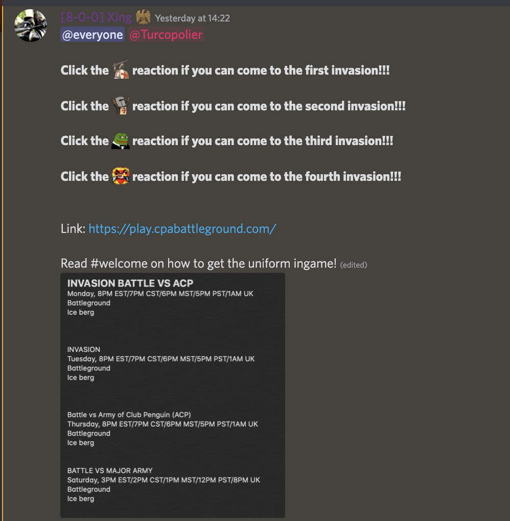 With CPA Battleground only just launching their public beta yesterday, the community has once again experienced a week without a main private server. Like last week, we will be bringing you a weekly recap of the army events from the last seven days. This will include Club Penguin based events, as well as other games or activities. The armies below have been listed alphabetically.