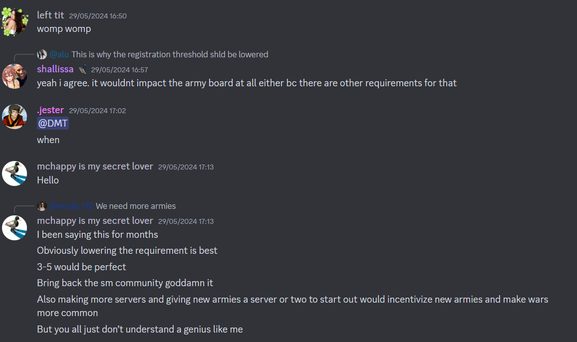The conversation saw some question the community’s predictions for the major armies’ final battle. The predictions saw Elite Guardians become the favourites to win. However, Hampterio claims that EGCP “almost lost to pic”, debating whether or not the predictions are correct. For the previous tournament, March Madness IX, the predictions for the finals were mixed with no clear winner. Yet, the predictions for the upcoming finals are clear with EGCP being favoured to win. Will EGCP take home their first trophy?