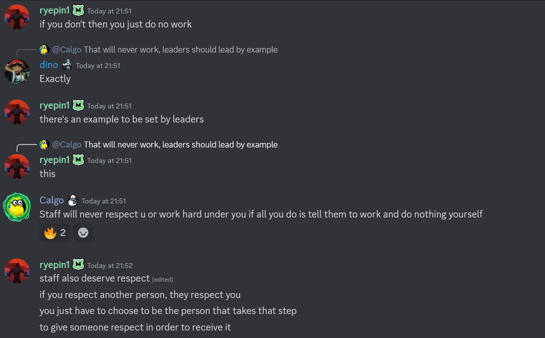 One of the conversations within the community chat recently has been about the work Leaders and Staff within an army do. When it was mentioned that some Leaders are expecting Staff to do the legwork while they do nothing, many others chimed in. For some, finding time for everything can be difficult. Yet, Leaders should also know the responsibilities that come with the role. Ultimately, as Calgo suggested, a Leader should lead by example, not make demands of others they are not willing to do themselves.
