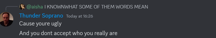 Aisha’s discord alt’s username is dcpaisha – this seems like they are trying hard to convince everyone that they are infact apart of DCP. Additionally, for someone who supposedly hates ACP, they have mentiond them a combined 214 times in CPA and DCP. It seems like Aisha is either obsessed or is indeed Ugly. Did you also notice that while Aisha was online during this conversation, Ugly was not? He only appeared after Aisha disappeared shortly after this screenshot.