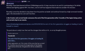 Unexpectedly, the Shadow Legionaries announced a pause in their army activities. Today, the army community witnesses this growing Small/Medium army entering a hiatus, wondering what led to this move.