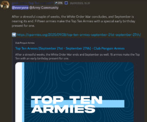 Raven116 first became involved with armies after joining the Doritos through the Club Penguin Online discord. He then moved onto Water Vikings, achieving Fourth in Command, before migrating to several different armies, including Magma Clan, Special Weapons and Tactics, and Templars.