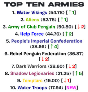 On April 4, 2018, long-time army veteran Xing founded the Templars. An incredibly successful army, holding the top spot on Club Penguin Armies’ Top Ten for 50 weeks. They were also the victors of Legends Cup XII, highlighting their excellence in battle. Despite this, the Templars have also faced their fair share of controversy over the years, including several multilogging scandals.
