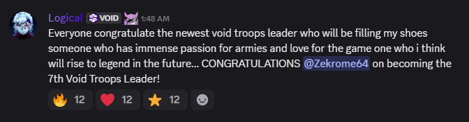 Last Tuesday, October 7, Logical announced his resignation from the Void Troops, promising the induction of a new leader immediately after. Later, on Sunday, October 12, the retirement event took place, ending Logical’s leadership tenure in VT.