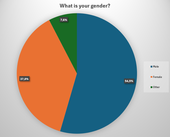 Similar to the 2014,2020,2023 censuses, the community is mainly made up of males. The number is lower than all the previous censuses, being 54.5%, having a 3.6% decline from 2023. At the same time, the female percentage has been increasing, reaching 37.8%. This is a 3% increase compared to 2023. It should be noted that in the 2014 census, 90% of the community were males and the rest 10% females, while there was no other option. With the community becoming more inclusive, the other option was introduced in 2020. In 2023 there were both the options of non-binary and other, which were merged this year. They received 7.1% compared to 7.6% now, seeing a 0.5% increase.