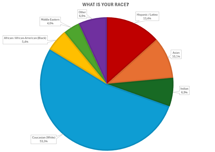 Following up next, Middle Easterns make up 6.9% of the responders, with a 1.1% increase since 2023 and a 5% since 2014. 5.4% of the community is African/African-Americans, with a significant 2.8% increase since 2023 and a 1% increase since 2014. Indians make up 4% of the community. Their race wasn’t added separately in the 2023 census, but was in 2014, when they received 7% more.