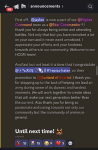 The main thing we want to focus on is recruiting and helping our HCOM continue to grow and improve. They’ve already done an amazing job, but we want to make sure they’re fully prepared to lead the next generation. We also plan to lean more into the gaming side of SR, since that’s something we’ve been neglecting recently. Overall, the goal is to bring in new members and build our community even more.
