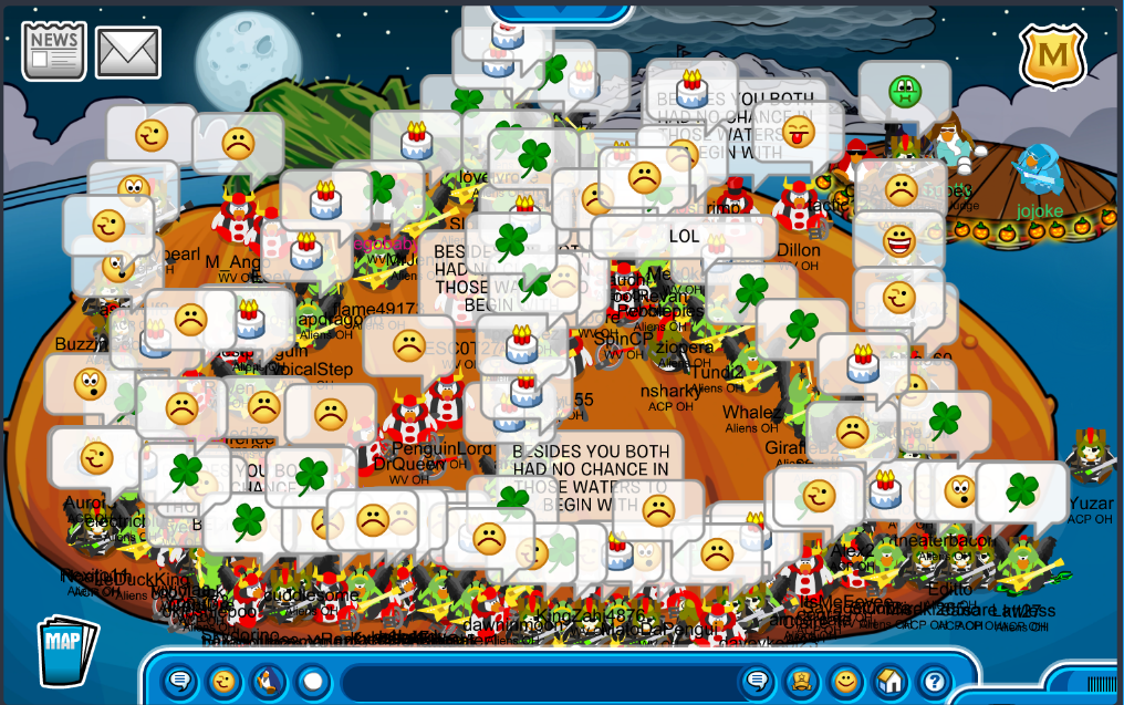 As the leader of his army, BP decides which CPPS he hosts events on. It has been noticed that the Aliens prefer Club Penguin Journey (CPJ) a lot. The number of Igloo Raids events posted in #event-results further proves this. There are even weeks when the Aliens host 2 Igloo Raids. It is not uncommon to have to count 6-7 CPJ Alien events for the Top Ten in some weeks. There is only one explanation for that. BP owns CPJ and increases the active members by getting the new Alien troops to join it.