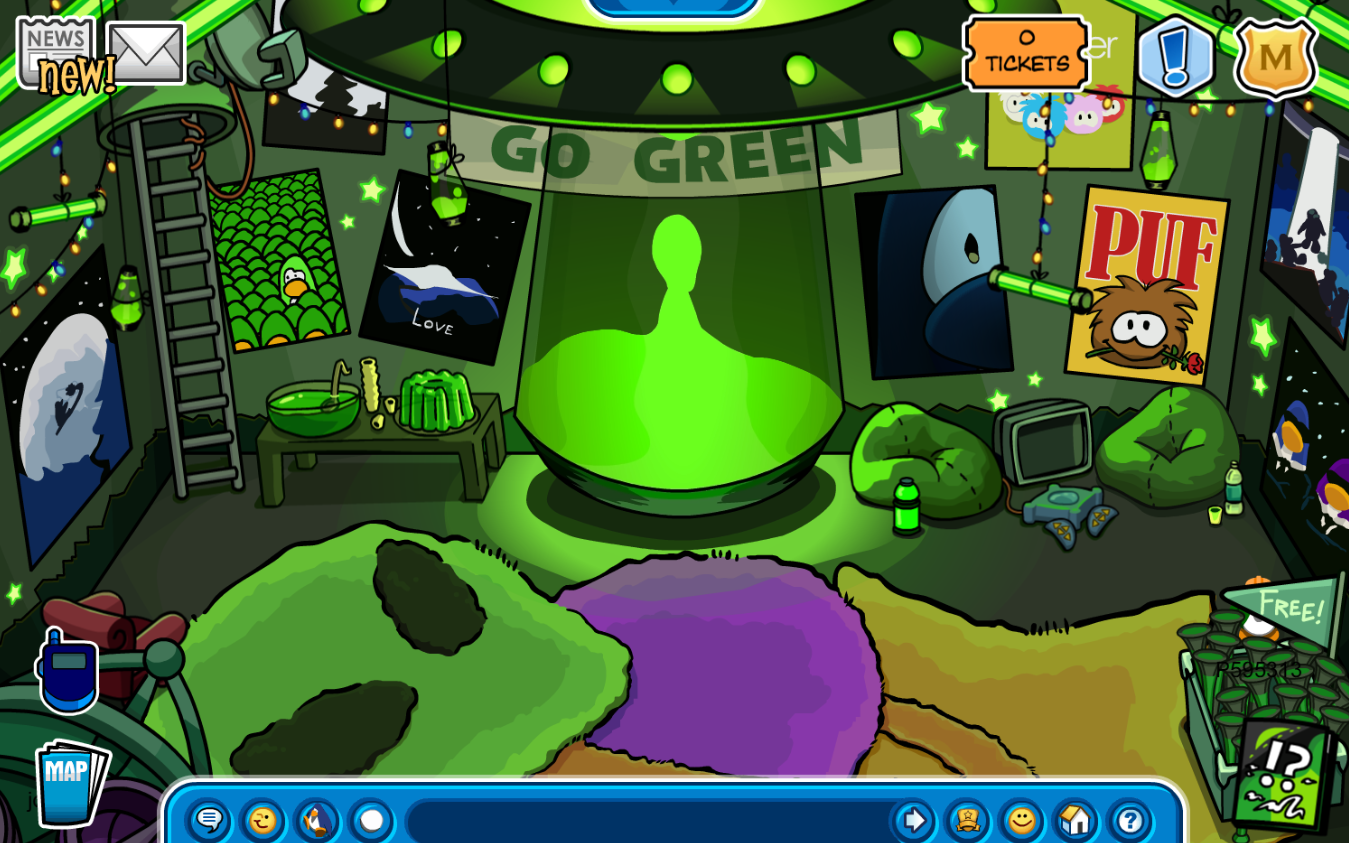 From the image, it is visible that CPJ promoted the green color. The whole room is green apart from some exceptions, like there is a brown puffle poster for some reason. You could argue that it could have been ACP who paid CPJ to add that room, as it is also a green army. This idea gets invalidated as soon as you see the next picture.