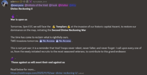 Now, on November 15, the Void Troops declared war on the Templars once more, dubbing it the Second Divine Reckoning War. In the war declaration post, they mentioned that TCP declined trading the server Ascent with them. Additionally, the lack of warfare in the community boosted the need for a declaration from their side.
