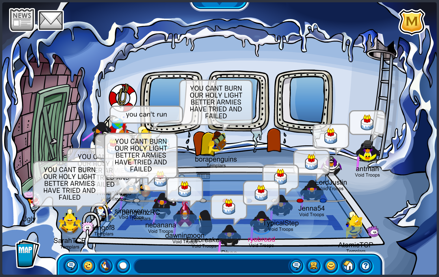 This battle was very interesting for many reasons. Firstly, VT was meant to invade Flippers on Tuesday, but due to Club Penguin Army Battleground being down, they had to reschedule.