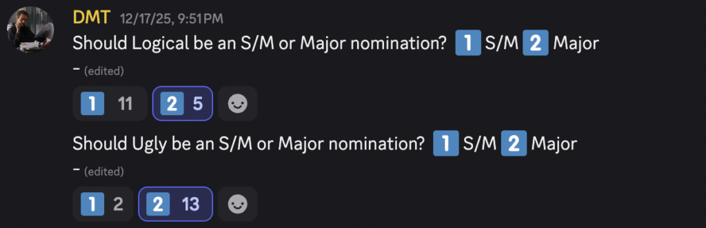 Much of the debate over this nominee list was over what to do with both Ugly and Logical of the Void Troops. Their meteoric rise over the summer and subsequent cooldown in the fall- paired with their hyperactivity in the year’s events- posed a tricky problem for the committee. This was only compounded by the two individuals larger career resumes. Though the Legends Committee typically does not comment on its nominees in this fashion, we deemed it necessary to be transparent regarding how we came to this conclusion. Ultimately, a non-binding vote was held on both nominees to decide which nomination they should receive. This came after several lengthy discussions on the topic.