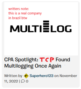 In the morning of the 29th December 2025, the multilogs of TCP have officially unionized. After gaining support from various groups, with the exception of Xing, the TCP Multilog Unions headquarters are currently unknown, likely to keep its members safe in a time of great uncertainty.