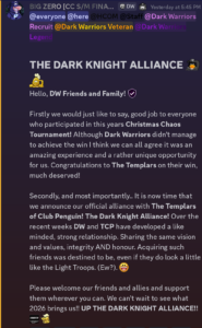 Club Penguin Armies reached out to Zez, a Templars’ leader, and Midnight, a Dark Warriors’ leader, for more information on the alliance.