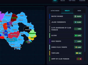 Preview of the server map wealth leaderboard. Each army has its own custom currency.