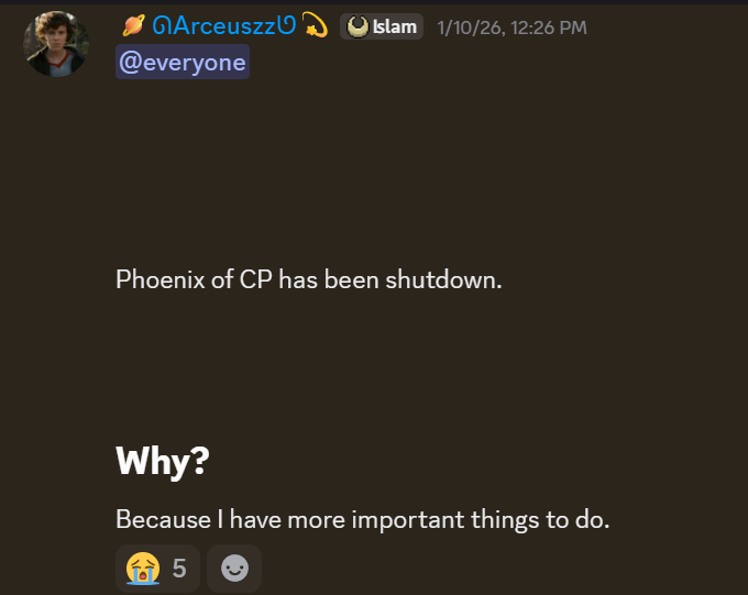 What is the reason behind the Phoenix of CP shut down?