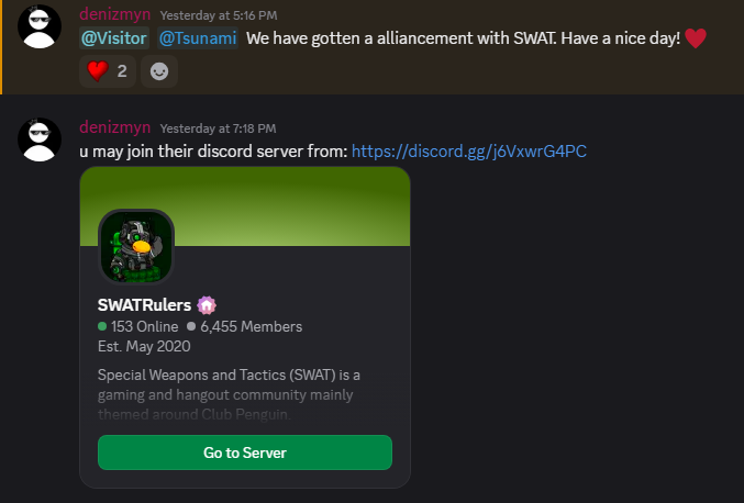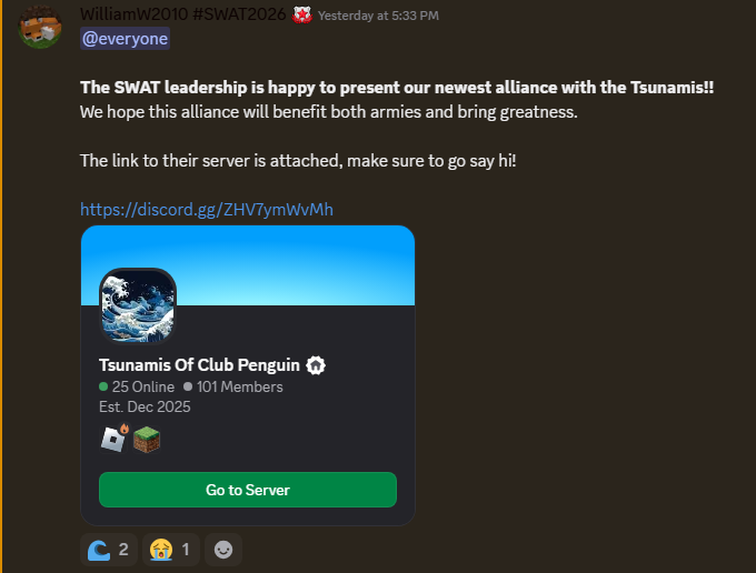 SWAT leader WilliamW2010 confirming the alliance shortly after