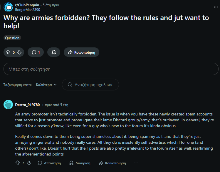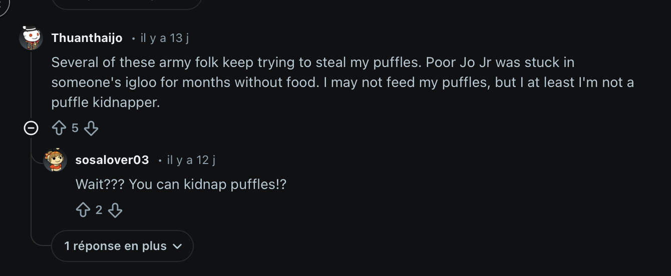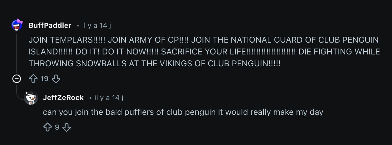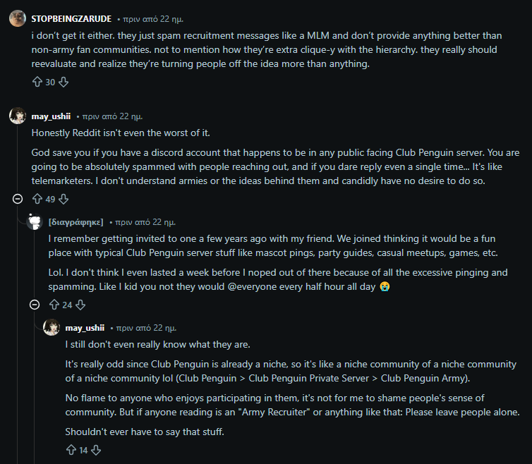 Below you can see some extra screenshots from various Reddit comments in the r/Club Penguin subreddit regarding the army posts, so you can reflect after reading the post.