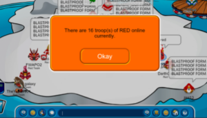 Operation: Winterstorm is a tournament hosted by Club Penguin Armies to beta test their new map. Players are divided into four teams, set by their army if affiliated and chosen if not, namely Red, Blue, Green, and Black, all fighting for land, aiming to have the most by Sunday. Since the last time we checked in on this tournament, almost all freeland had been taken, and thus, mainly only invasions upon other teams have been possible, with Red fighting Black and Green fighting Blue. Some teams have done better than others, but no team has been eliminated yet.