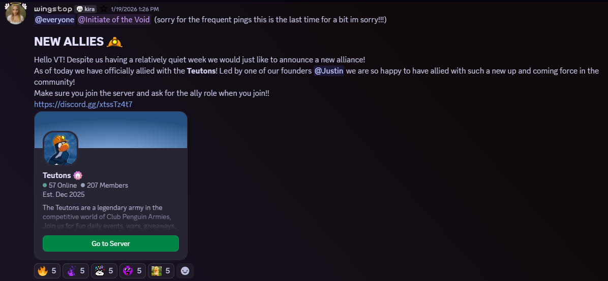 Club Penguin Armies sat down with both Justin, of Teutons, and Kira, of Void Troops, to learn more about the newest alliance between both armies.