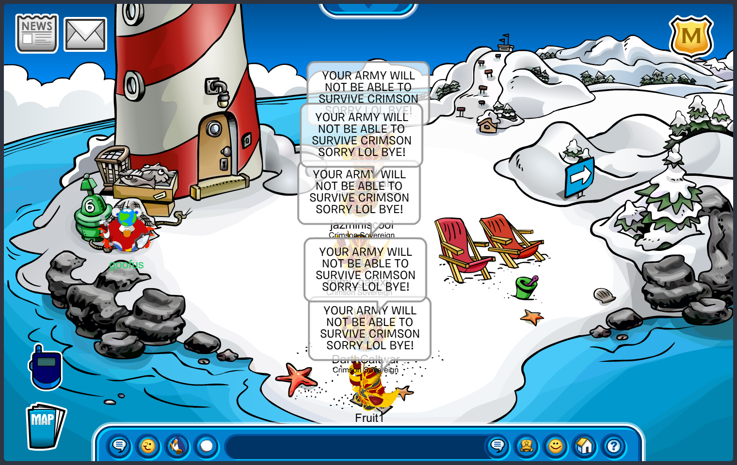 As the first month of the New Year comes to an end, we see 2 fresh armies enter a war to test their strength. On January 12, Crimson Warlord Fruit Salad declared war on Tsunami’s of Club Penguin. Continue reading to discover what caused the war, its outcome, and the plans these armies have for this year.