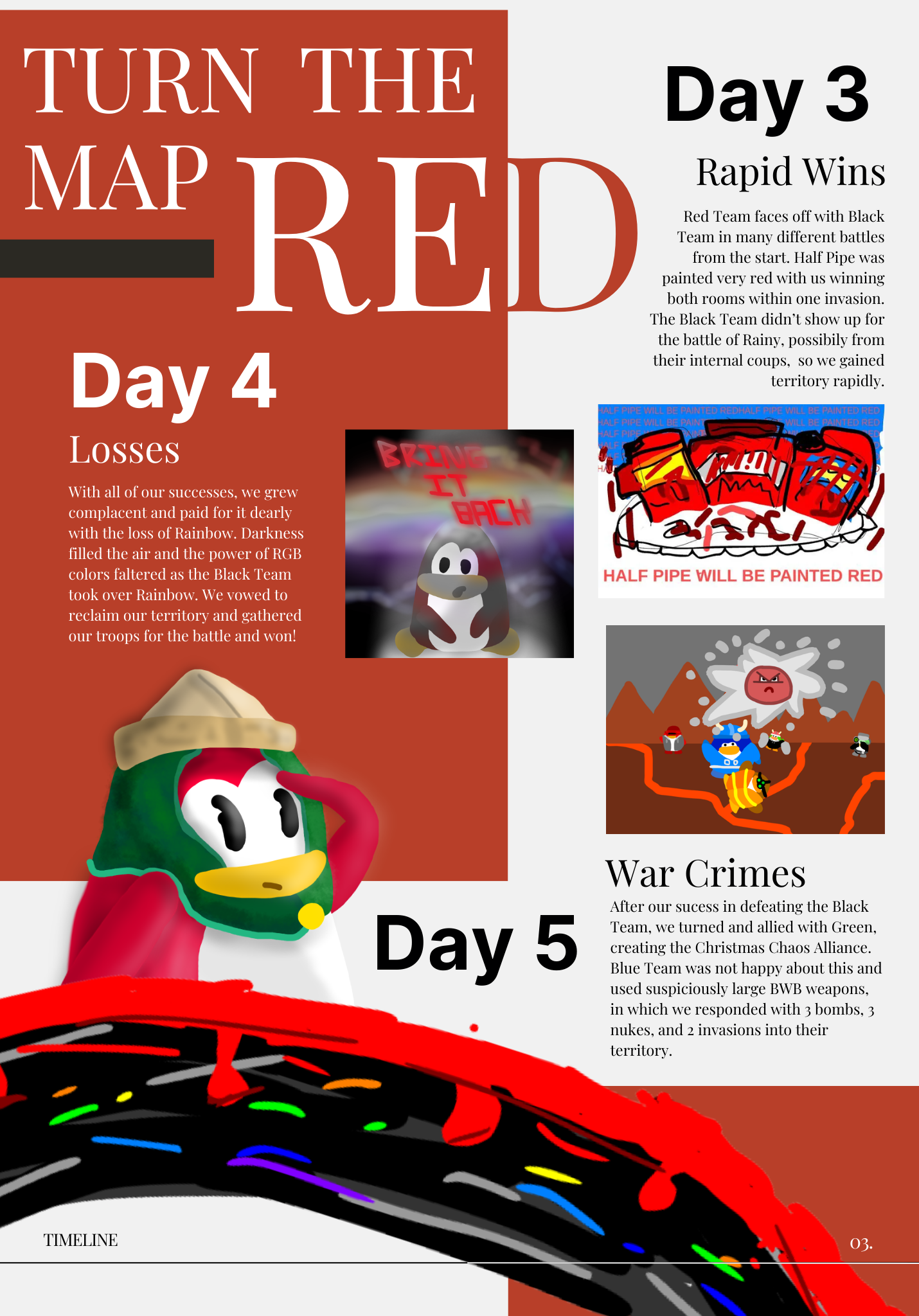 Since the team was led by people from the Army of Club Penguin and included several members from the Rebel Penguin Federation, and other armies as well, it had more of a major army vibe. Shoutout to Nefenom for writing event posts for each invasion, like the one you see below.