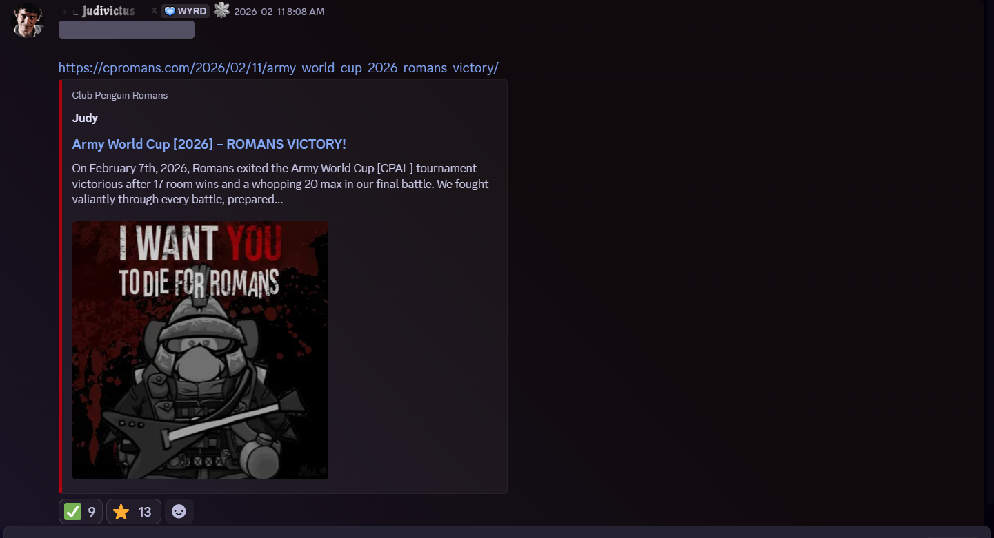 Kennedy joined the army community in late 2025 and began his journey with the Templars. From the very start, he actively participated in events and quickly made a name for himself. His early days in the Templars were essential for adjusting to army life and building connections that would shape his future. In TCP, Kennedy rose to the rank of General. After gaining valuable experience, he decided to transfer to the Romans, marking the start of a more significant chapter in his career. Due to his experience, he transferred to the Romans as a third-in-command, where he currently resides.