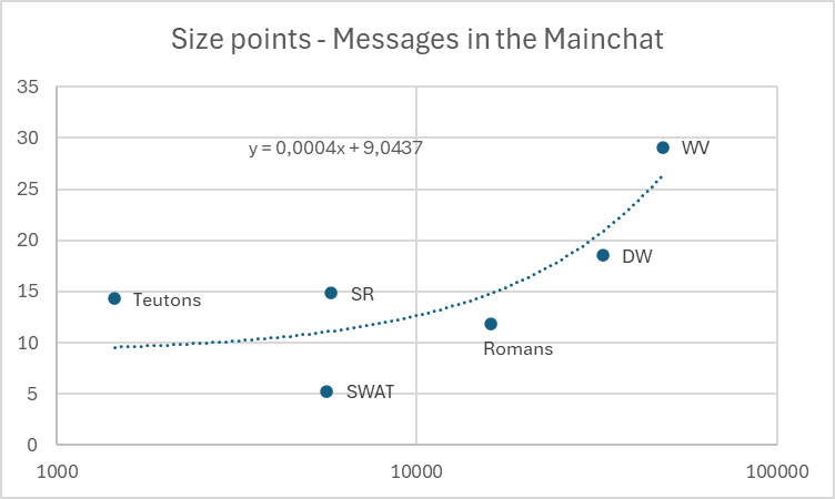 Size Points Compared to Messages in the Mainchats for the CPAB Armies