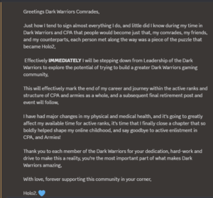 I want to express my gratitude to those that have supported and helped the Dark Warriors to make a return to this community, I am forever grateful to have been able to relive an experience that shaped my entire online life when I was young!