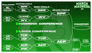 March Madness is an ancient tradition, dating back to February 25, 2013, under Club Penguin Army Central (CPAC); its origins were in CPAC Editor in Chief Paco’s desire to recreate the NCAA’s March Madness tournament within Club Penguin. The army that won the first March Madness was Nachos. Since then, the tournament has continued, with a brief hiatus in 2017-2019 before being revived by Club Penguin Online Army League for March Madness V. Then, March Madness VI was hosted by Club Penguin Army Headquarters (CPAHQ); it was then hosted by several independent leaders for March Madness VII, and finally, it has been hosted by Club Penguin Armies (CPA) from March Madness VIII and beyond.