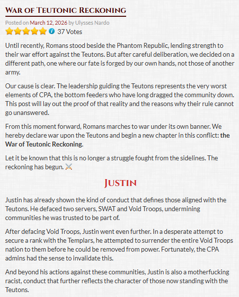 In this post, Xing has tied historical information and philosophical beliefs to the army community’s war and competition drought. Do you agree with his beliefs? Can there even be a philosophical comparison, and is history relevant when it comes to the armies? Let us know what you think.