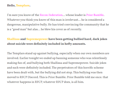 Shallissa was inducted into the Templars’ leadership during the Templars’ 8th Anniversary Event as a Grand Prior. Following this, Sidie, the new Empress of Templars, released a post on the Templars’ website, detailing her thoughts on the current state of TCP.