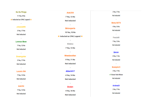 The selection procedure is thoughtfully designed to integrate community feeling with official consideration. A 20 member committee; 14 of whom are already CPAC Legends casts individual votes, while public feedback factors equally, often serving as a deciding element in strongly debated cases. Candidates for this cycle represented different generations of CPA history, from early-period personalities like Gu Gu Pengu and Johanwillfir (2007 era) to later contributions like Mustapha10 and Andrew24 (approximately 2015).