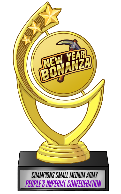 The first edition of the tournament, officially announced on May 12. Ultimately, only two armies could win when put up against an army of the same size classification as them. The People’s Imperial Confederation was able to come out on top in yet another s/m tournament battle, despite the Winged Hussars putting up a valiant fight. The major side of the finals saw Elite Guardians and Army of Club Penguin reheat their rivalry on the battlefield. In what was an intense battle, the Guardians ultimately came out on top, making history by winning their first trophy since reviving.